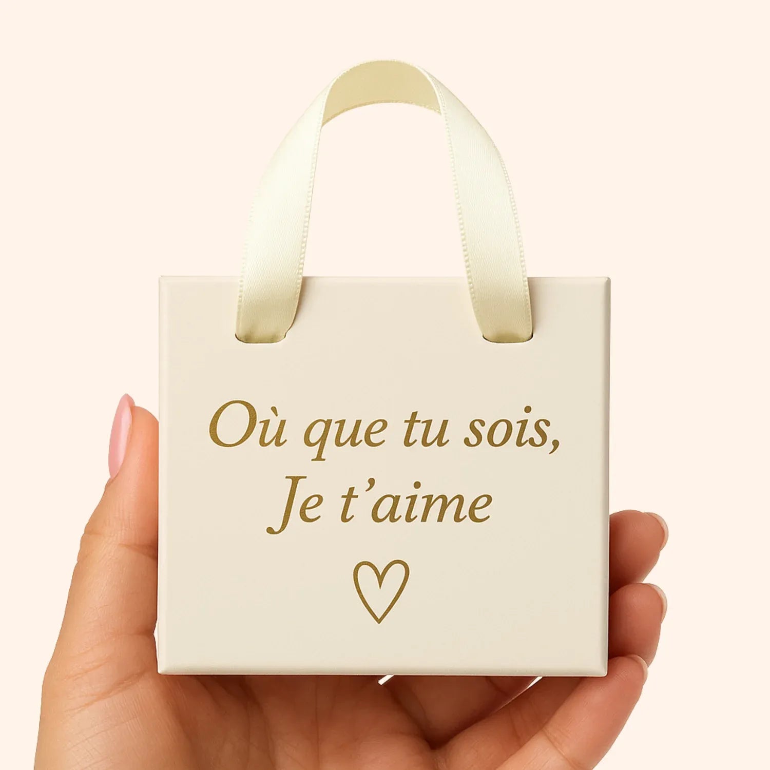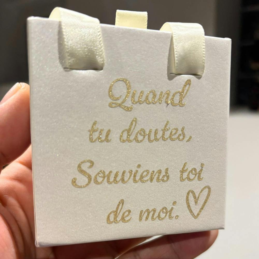 Au dos de la boîte, votre message prend vie : gravé en lettres dorées, il devient ce secret que seule la personne que vous aimez découvrira.
