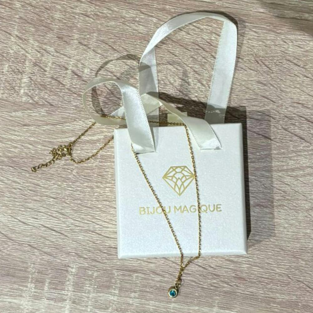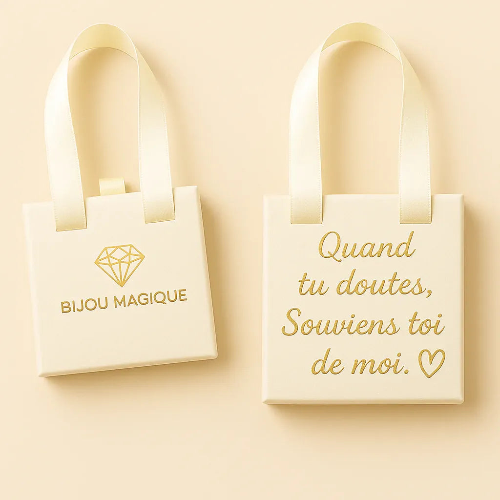Le Bijou Magique est un collier unique, accompagné de sa jolie boîte carrée personnalisée.